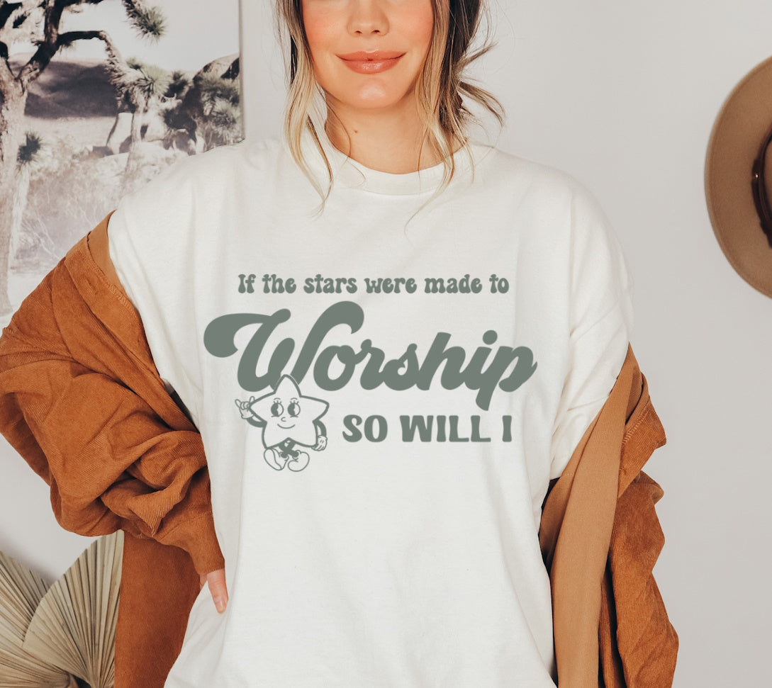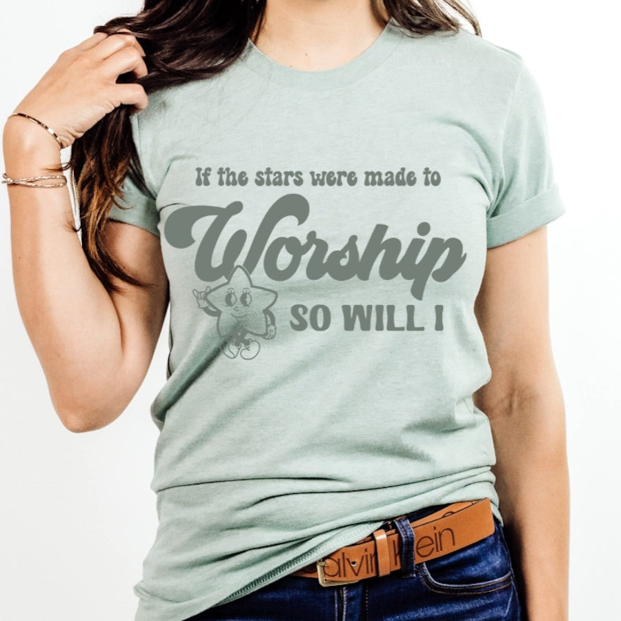 If The Stars Were Made To Worship So Will I Christian T-shirt.