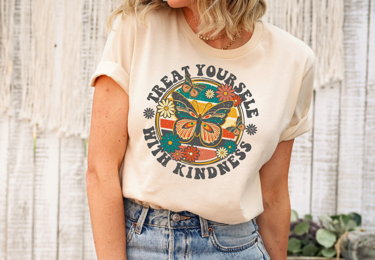 Treat Yourself With Kindness Butterfly Retro Print Unisex T-Shirt